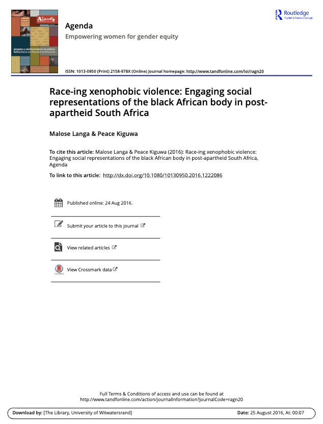 Race-ing Xenophobic Violence: Engaging Social Representations Of The Black African Body In Postapartheid South Africa