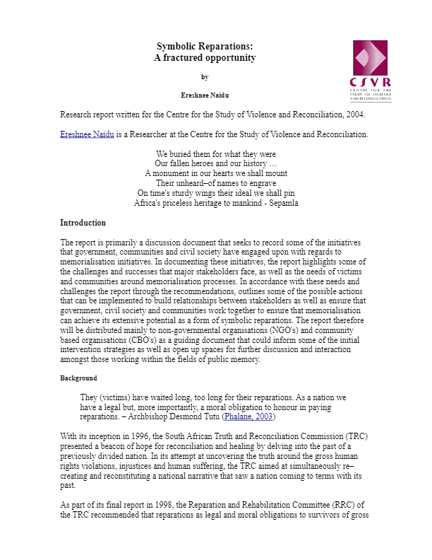 Symbolic Reparations: A Fractured Opportunity