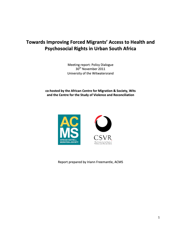 The policy dialogue "Towards improving forced migrants' access to health and psychosocial rights in urban South Africa" took place on the 30th of November 2011. The dialogue focused on a range of obstacles that migrants face in South Africa as…